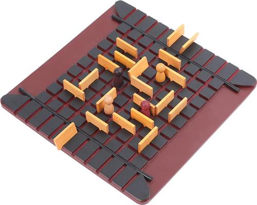 | Verpakkingsinhoud | Een spelbord met een rooster van 9x9 vakjes. Kleurrijke pionnen voor 4 spelers. Barrières (hekken) voor elke speler (10 hekken per persoon bij 2 spelers, 5 hekken per persoon bij 4 spelers). Duidelijke spelregels om het spel gemakkelijk te leren en te spelen. |