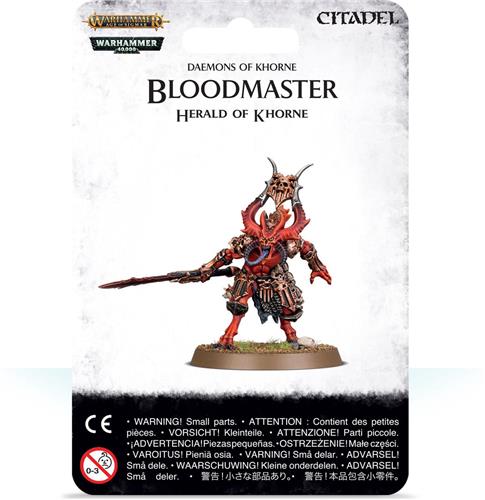De Warhammer 40.000 - Blades Of Khorne: Herald Of Khorne is nu verkrijgbaar in plastic. Dit model bouwt één miniatuur op en levert meerdere aanvallen. Daarnaast inspireert hij Bloodletters (97-08) om zich in de strijd te storten. Met deze set vind je alles wat je nodig hebt om je eigen Bloodmaster te bouwen. Hij is gestileerd naar de Bloodletters die hij leidt, maar is groter en draagt extra pantser, waardoor hij perfect past aan de frontlinie van je leger. De set wordt geleverd met 14 plastic onderdelen en een ronde basis van 40mm.