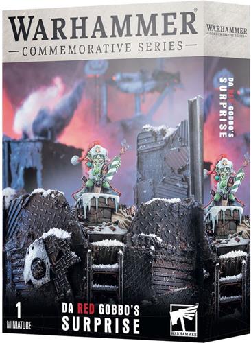Celebreer het seizoen van geven met deze zeer gulle Red Gobbo, klaar om wat "cadeautjes" te laten vallen op zijn favoriete Imperial burgers. Ontworpen als een miniatuur diorama, zullen fans van alle strepen genieten van dit zeer verzamelbare Warhammer Commemorative Series-model, alleen beschikbaar voor het vakantieseizoen van 2023. Dit meerdelige plastic kit bouwt Da Red Gobbos Surprise, met je favoriete ondeugende grot gezeten op een schilderachtige basis. Zijn tas met goodies staat open en enkele van zijn geschenken zijn uitgegleden - gelukkig, meer welkom dan de grote verrassing die hij staat te onthullen. Verpest zijn verrassing niet! Deze kit bestaat uit 9 plastic componenten en een Citadel 40 mm ronde basis. Deze miniatuur wordt ongeverfd geleverd en vereist montage - we raden aan om Citadel Plastic Lijm en Citadel Colour-verf te gebruiken.