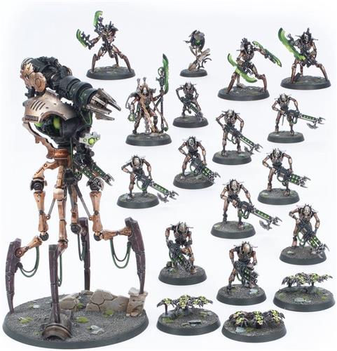 Deze set bevat de volgende meerdelige plastic modellen: 1x Overlord, bewapend met een tachyon-pijl, 1x Canoptek Doomstalker, 3x Skorpekh Destroyers, vergezeld van 1x Plasmacyte, 10x Necron Warriors, 3x Canoptek Scarab Swarms. Alle modellen worden geleverd met hun bijbehorende bases. Deze miniaturen worden ongeverfd geleverd en moeten worden geassembleerd - we raden aan om Citadel Plastic Glue en Citadel Colour-verf te gebruiken.