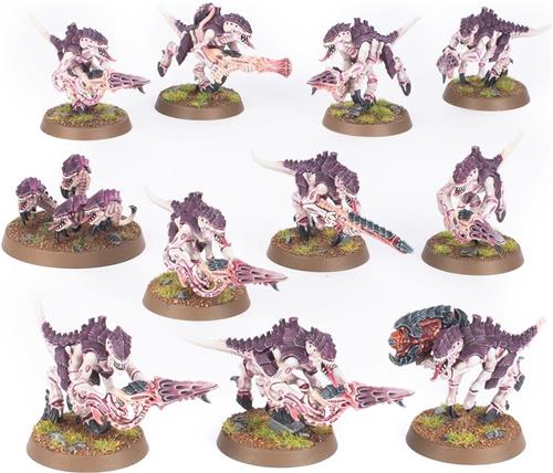 De Termagants uit het Warhammer 40k Tyranids assortiment zijn angstaanjagende roofdieren die in grote zwermen op hun prooi aanvallen. Gewapend met levende wapens, spugen ze vleesetende organismen en giftige stekels uit om indringers te verslaan. Deze plastic kit bestaat uit 10 Termagants en een Ripper Swarm om je leger uit te breiden. Elke Termagant kan uitgerust worden met drie biologische wapens naar keuze, zoals een vleesboorder, een verslinder of een slijmspuwend wurgweb. Daarnaast zijn er speciale wapenopties beschikbaar om je Termagants nog dodelijker te maken.
