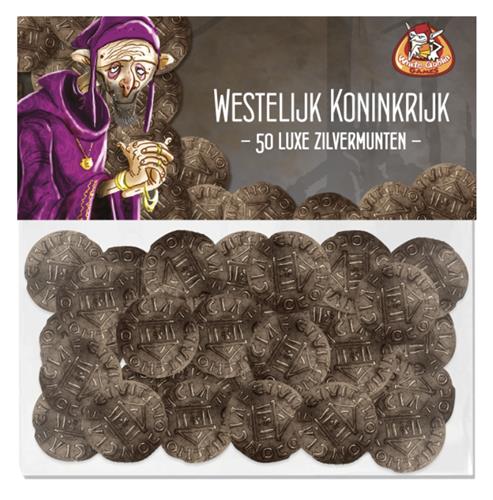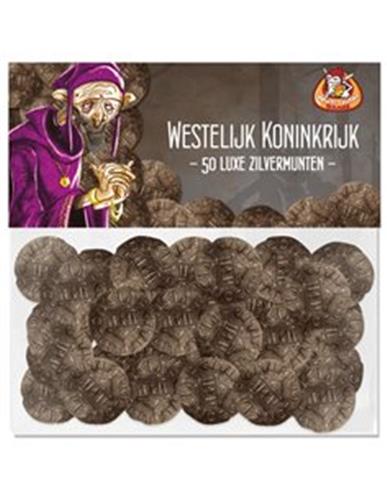 Voeg een vleugje luxe en geschiedenis toe aan je spelervaring met de Westelijk Koninkrijk Zilvermunten. Deze set van 50 luxe (metalen) munten is perfect voor gebruik in de diverse spellen van de WESTELIJK KONINKRIJK trilogie, waaronder Architecten, Paladijnen en Burggraven.