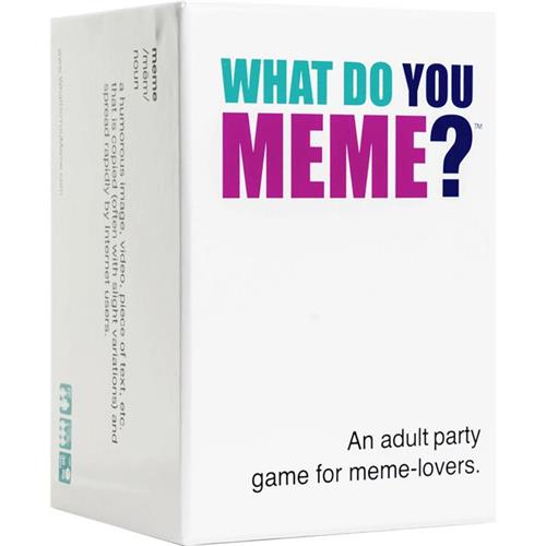 In What Do You Meme Engelstalige editie ben jij een echte "Meme-god"? Is 9gag jouw thuisbasis en denk jij dat je jouw IRL vrienden kunt verslaan met de allergrappigste memes? Het doel in What Do You Meme Engelstalige editie is om een zo grappig mogelijke meme te creëren door de plaatjes en teksten van de kaarten te combineren. Een wisselende jury kiest iedere ronde de beste combinatie en wijst een punt toe aan de winnaar. Het spel is afgelopen als alle kaarten op zijn of wanneer jullie simpelweg honger krijgen en een pizza gaan bestellen. De speler met de meeste punten aan het einde van het spel wint.