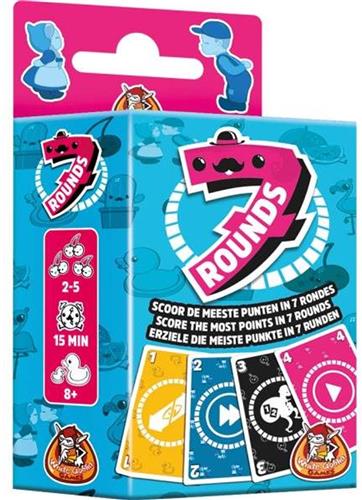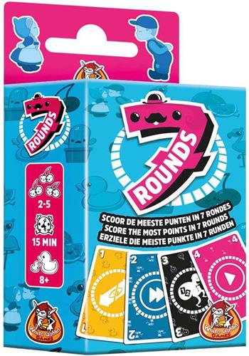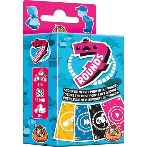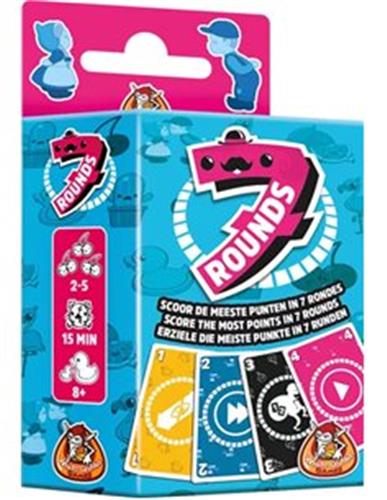 Productomschrijving 7 rounds tuckbox editie: In 7 Rounds verzamel je in 7 rondes kaarten met een zo hoog mogelijke waarde. Tijdens het spel heb je vier kaarten op hand en probeer je jouw hand te verbeteren door nieuwe kaarten te pakken van de trekstapel, kaarten te spelen of misschien wel de beste kaarten van jouw tegenstander te stelen. De kaarten in 7 Rounds hebben speciale effecten, waardoor je je punten zomaar kunt verliezen! Inhoud van het spel: 77 kaarten, 7 rondekaarten, spelregels