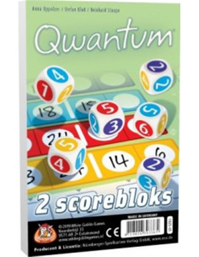 Met deze 2 extra scorebloks kan jij weer volop genieten van je favoriete spel Qwantum! Dobbel erop los! De scorebloks zijn ideaal als de originele scorebloks van Qwantum op zijn. In totaal zijn er 160 blaadjes verdeeld over 2 scorebloks, dus je kunt weer even vooruit. Zo hoef je je geen zorgen te maken dat je zonder scoreblaadjes komt te zitten tijdens het spelen.