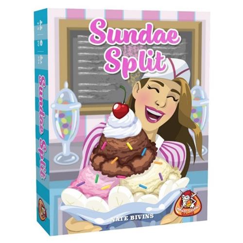In het kaartspel Sundae Split van White Goblin Games proberen spelers de beste ijsjes te maken door ingrediënten te verzamelen. Probeer de juiste toppings en smaken te krijgen, maar vermijd groenten! Aan het einde van het spel worden de ijsjes gescoord en de speler met het beste ijsje wint het spel. Een speler verdeelt de ingrediënten over stapels en de andere spelers kiezen om beurten een stapel. De 'deler' krijgt de laatste stapel. Speel slim en zorg dat jij krijgt wat je wilt! Verzamel de beste mix van ijsbolletjes en toppings en maak het lekkerste ijsje!