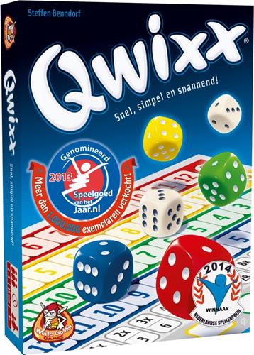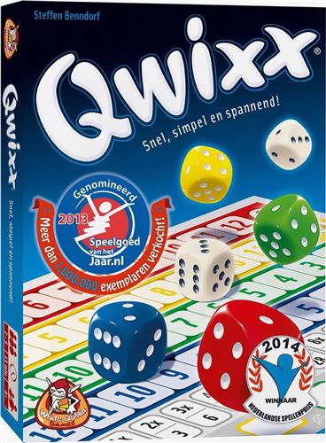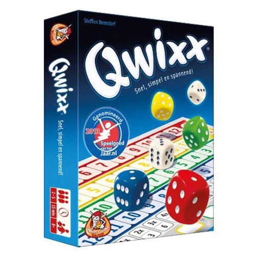 Qwixx is een eenvoudig dobbelspel voor elke gelegenheid en met ieder gezelschap. Bij Qwixx hoef je niet op je beurt wachten - iemand dobbelt en iedereen kan de worp benutten! Hoe meer getallen je op je scoreblad aankruist, des te meer punten je krijgt. Qwixx kan in twee minuten worden uitgelegd en is spannend tot de laatste worp! Dobbel mee en laat je aansteken door de Qwixx-koorts! Inhoud: 6 dobbelstenen, 1 scoreblok, spelregels. Genomineerd voor speelgoed van het jaar 2013.