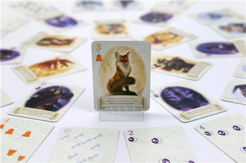 Ontdek de mysterieuze wereld van het spel: De Vos in het Bos. Een tweepersoons slagenspel waarin je een goede balans in je slagen moet vinden om te winnen. Het spel is gebaseerd op het sprookje 'The Queens' Butterflies' van Alana Joli Abbott. Wil je dit sprookje lezen? Klik dan hier. (Engelse tekst) Aan het einde van elke ronde scoren de spelers punten afhankelijk van het aantal gewonnen slagen. De speler met de meeste punten aan het einde van het spel is de winnaar.