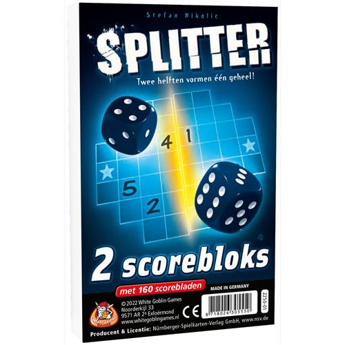 - Bij Spelspul kun je White Goblin Games - Splitter Scoreblokken - Dobbelspel kopen voor de prijs van € 6,95. Dit is vandaag de goedkoopste webshop.