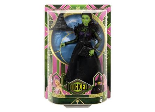 Elphaba, met haar groene huid en gevlochten zwarte haren, is ongeveer 0,30 kg zwaar en komt in een verpakking van 212 mm x 69 mm x 323 mm. Haar jurk en accessoires zijn zorgvuldig gemaakt van kunststof en stof, wat zorgt voor duurzaam speelplezier.