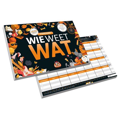In het spel Wie Weet Wat krijgt elke speler een blad met verschillende categorieën voorgeschoteld. Het spel begint zodra er een letter uit de letterbalk wordt gekozen. Vervolgens is het de uitdaging om zo snel mogelijk elke categorie in te vullen met een woord dat begint met de gekozen letter. Het spel gaat door totdat alle rijen zijn gevuld, waarna de punten worden opgeteld. Degene met de meeste punten wint de spannende strijd. De standaard editie van Wie Weet Wat bevat 32 creatieve en grappige categorieën die elke speler tot het uiterste drijven.