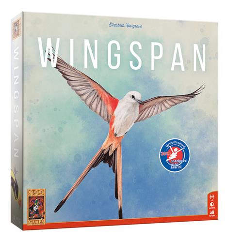 Met Wingspan als vogelspel probeer je de beste leefomstandigheden te creëren voor de vogels in je persoonlijke natuurgebied. Dankzij tactische combinaties scoor je meer eieren, kaarten of voedsel dan je tegenspelers. Het spel bevat 170 unieke vogelkaarten en verschillende bonuskaarten voor eindeloze variatie. Wingspan heeft fraai speelmateriaal, waaronder een vogelhuisje voor de dobbelstenen en plastic eieren. Het spel kan solo gespeeld worden en bevat een speciale automa-variant. Speelplezier gegarandeerd voor vogelliefhebbers vanaf 10 jaar met een speelduur van circa 40 minuten.