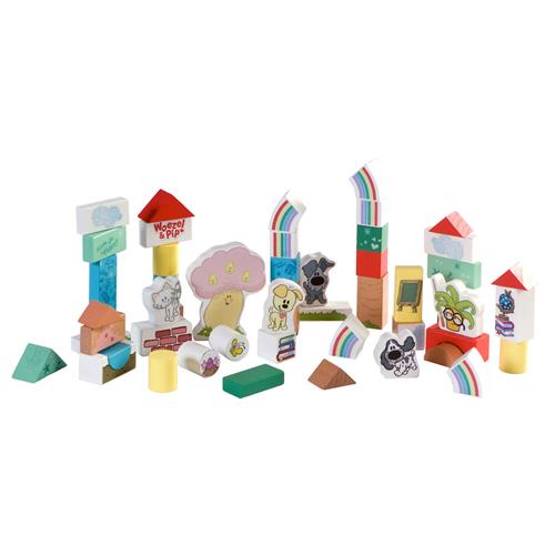 Woezel en Pip houten blokken - Blokken - 50 delig - Vrolijke kleueren - Verschillende vormen