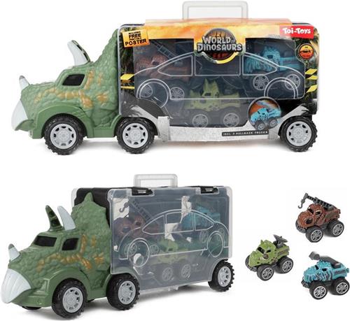 World of Dinosaurs Dinotruck met 3 Pull-back Auto's