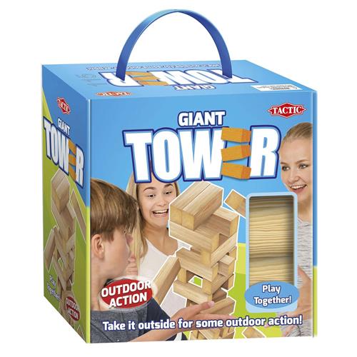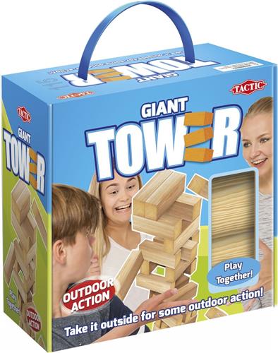 XL Tower is een spannende versie voor buiten van het klassieke torenbouw familiespel! Om de beurt mogen de spelers een houten uit het midden van de toren pakken en deze bovenop de toren stapelen. Maar pas op dat de toren niet omvalt, want dan is het spel over! De speler die het één na laatste blokje heeft verwijderd voordat de toren omvalt heeft gewonnen. Inhoud: - 30 houten blokken - handleiding