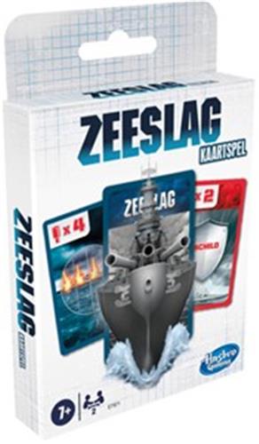 Het klassieke Zeeslag-spel is er nu ook in de vorm van een leuk kaartspel dat je snel kunt spelen! In deze versie van Zeeslag leg je je coördinatenkaarten voor je neer en kies je de slagkaarten uit je speelkaarten om een pinnetjeskaart of een powerkaart te spelen. Het is een spannend strategiespel waarbij spelers hun kaarten gebruiken om vijandelijke schepen te zoeken, te raken en tot zinken te brengen. Jongere spelers kunnen de spelregels voor beginners gebruiken die in de spelgids staan. De speler die er als eerste in slaagt om de 5 schepen van de tegenstander tot zinken te brengen, wint het spel! Dit kaartspel is praktisch voor kinderen om een versie van Zeeslag onderweg of naar het huis van een vriend mee te nemen. Hasbro Gaming en alle gerelateerde termen zijn handelsmerken van Hasbro.