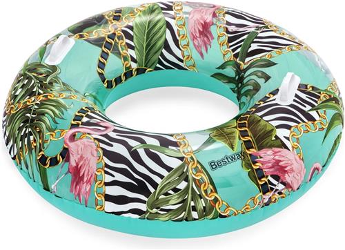 Niet alleen voor de zomerse waterpret is deze zwemband ideaal, maar ook qua opbergen en onderhoud is hij praktisch en duurzaam. Dankzij het geteste materiaal kan je keer op keer van deze modieuze zwemband genieten. Zet de toon voor een zomer vol plezier, ontspanning en stijl met de Bestway Floral Fantasy zwemband. Grijp je kans om uniek te zijn en een fashion statement te maken waar je ook gaat!