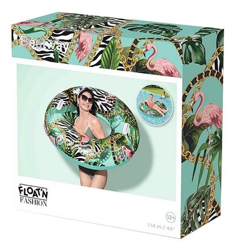 Stap deze zomer in stijl en volg de trend met de Zwemband Floral Fantasy 114 cm. Of je nu naar het strand gaat, een dagje zwembad gepland hebt of gewoon in je eigen achtertuin van de zon wilt genieten, deze zwemband is een must-have accessoire. Het opvallende Floral Fantasy design met een vleugje turquoise en een schattige roze flamingo zal zeker de aandacht trekken. Gemaakt van stevig vinyl materiaal en met een diameter van 114 cm, is deze zwemband perfect geschikt voor volwassenen vanaf 12 jaar.
